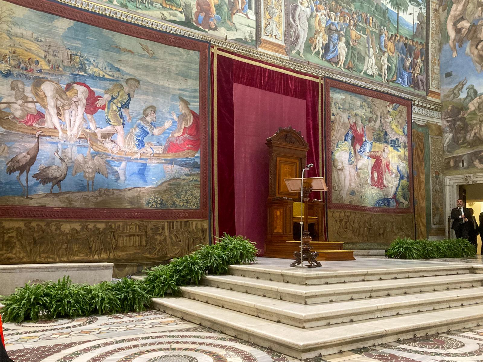 And the beauty of the Sistine Chapel was further enhanced for this ceremony by the placing of two famous Raphael tapestries on its walls. The cartoons, or preparatory drawings, of these tapestries are part of the Royal Collection in London and they were brought together, for the first time, when Pope Benedict XVI visited the United Kingdom in 2010. Such attention to detail spoke volumes of the great importance of this moment.